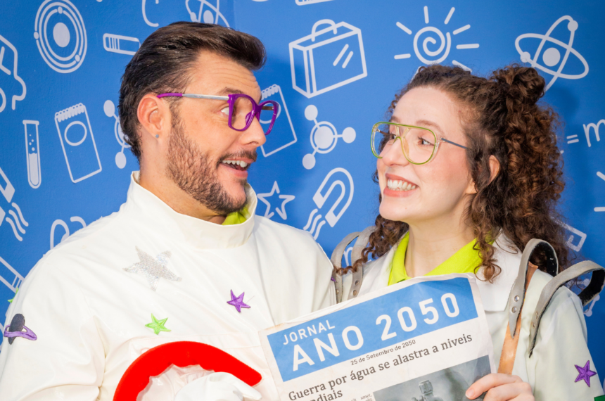 No espetáculo “Por um Futuro Sustentável”, a narrativa gira em torno de um cientista que, perdido no espaço, retorna do futuro para alertar a humanidade sobre as consequências das escolhas atuais. Ao chegar, ele se depara com uma equipe de cientistas excêntricos, que guiam as crianças em uma jornada interativa repleta de experimentos, desafios e descobertas.
